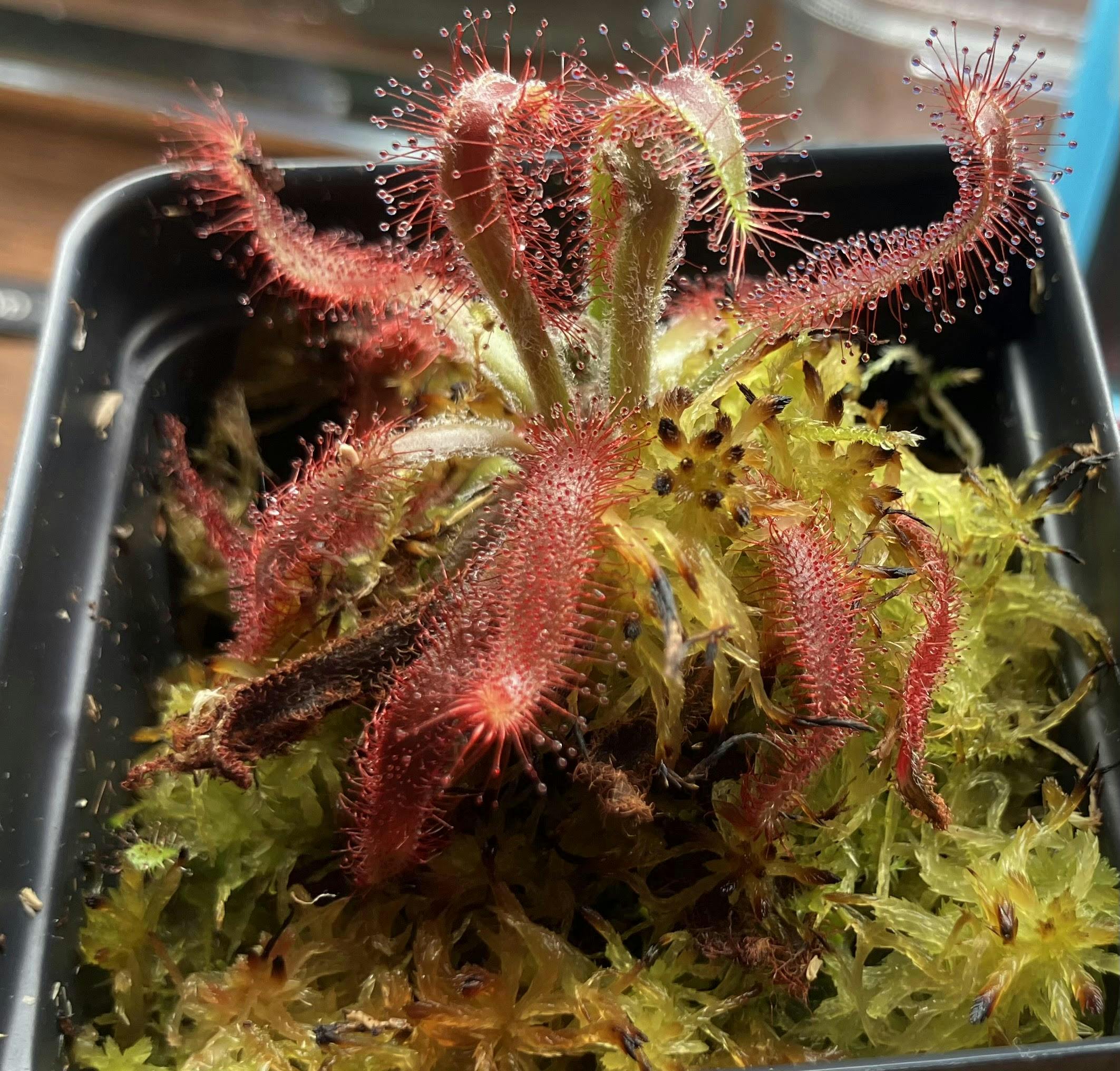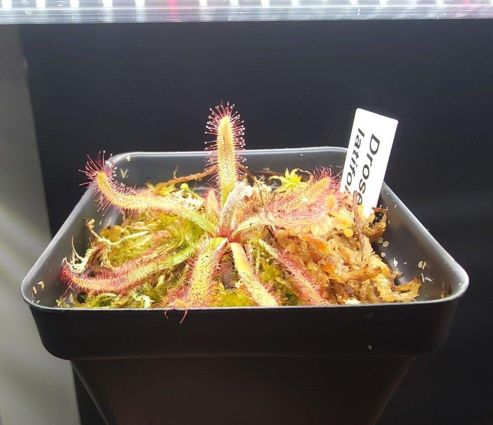 Care for this carnivorous plant is simple. I recommend using a mix of 1:1 long fiber sphagnum moss to perlite, using the tray method to keep the substrate constantly wet with water under 50 PPM TDS. I use a 14 hour photoperiod at about 250 PPFD, but you can use a natural photoperiod or anywhere from 10-16 hours. I normally spray the leaves with 1,000-2,500PPM MaxSea fertilizer weekly, or as often as I remember.